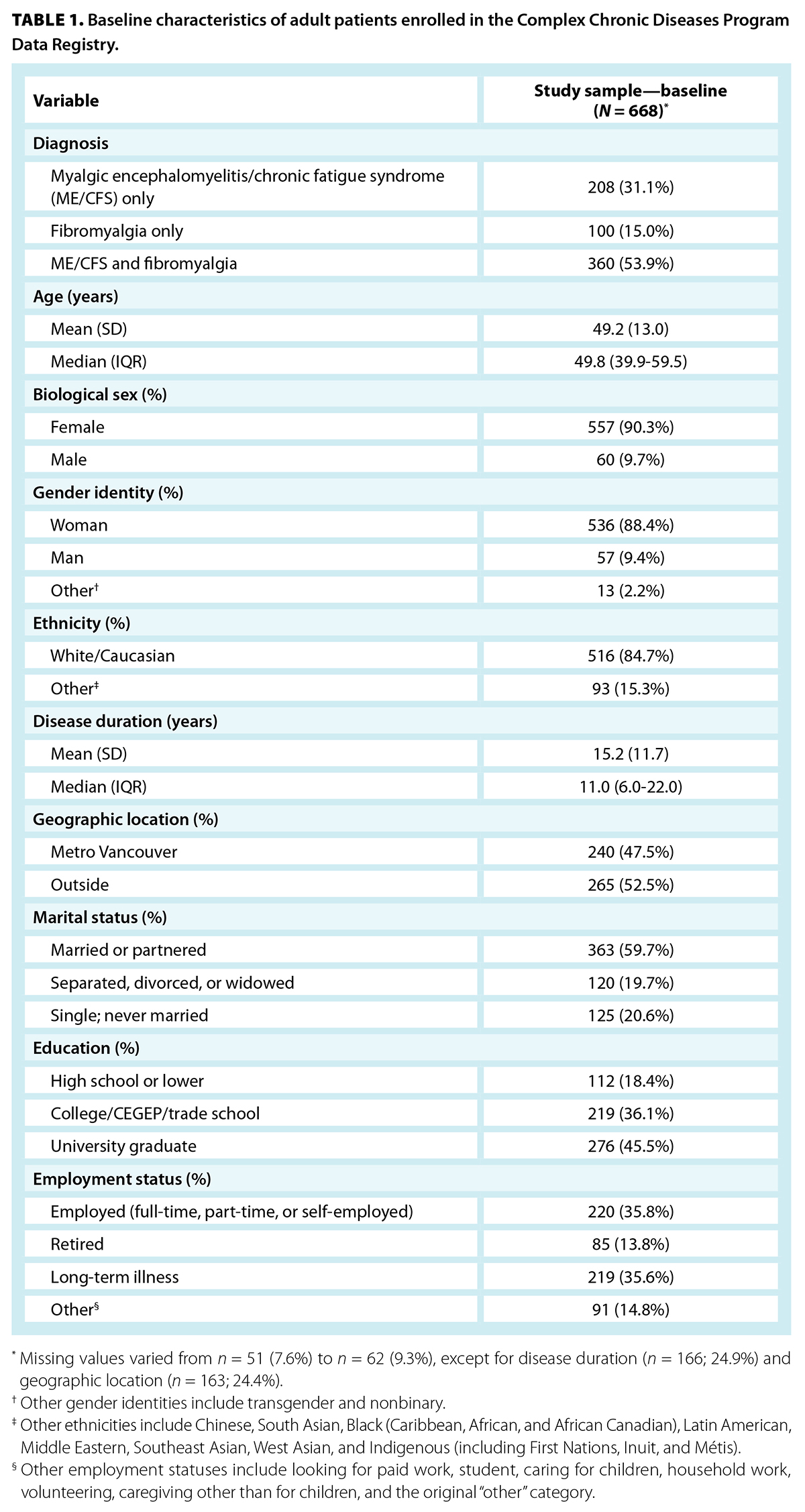 TABLE 1. Baseline characteristics of adult patients enrolled in the Complex Chronic Diseases Program Data Registry.