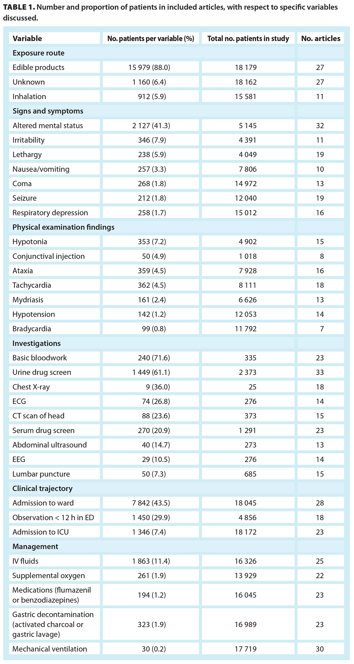 Methods: We synthesized published peer-reviewed studies on clinical presentations, management, and outcomes in children with unintentional exposure to cannabis. We reviewed the Medline and Embase databases for articles that discussed unintentional exposures to cannabis in children (≤ 18 years of age).