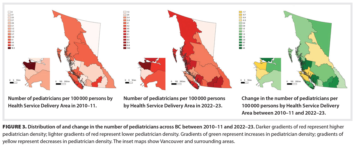 Conclusions: Rural–urban discrepancies in specialist distribution in BC have persisted over the past decade. We call upon clinicians and policymakers to address this long-standing issue.