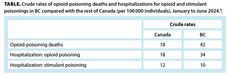 The need for a coordinated substance use system of care in British Columbia and beyond has never been more urgent. Since 2016, almost 50 000 Canadians have died from an opioid-related poisoning.[1] BC has been particularly affected, having the highest rates of opioid-poisoning deaths and hospitalizations for opioid and stimulant poisonings compared with the rest of Canada [Table].[1]